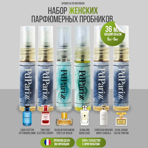 Искусно созданный набор пробников, представленный в стеклянных флаконах в тревел формате, 6 штук по 6 мл каждый - это настоящий шедевр французских ароматов премиум класса, созданных с любовью в сердце Франции.
